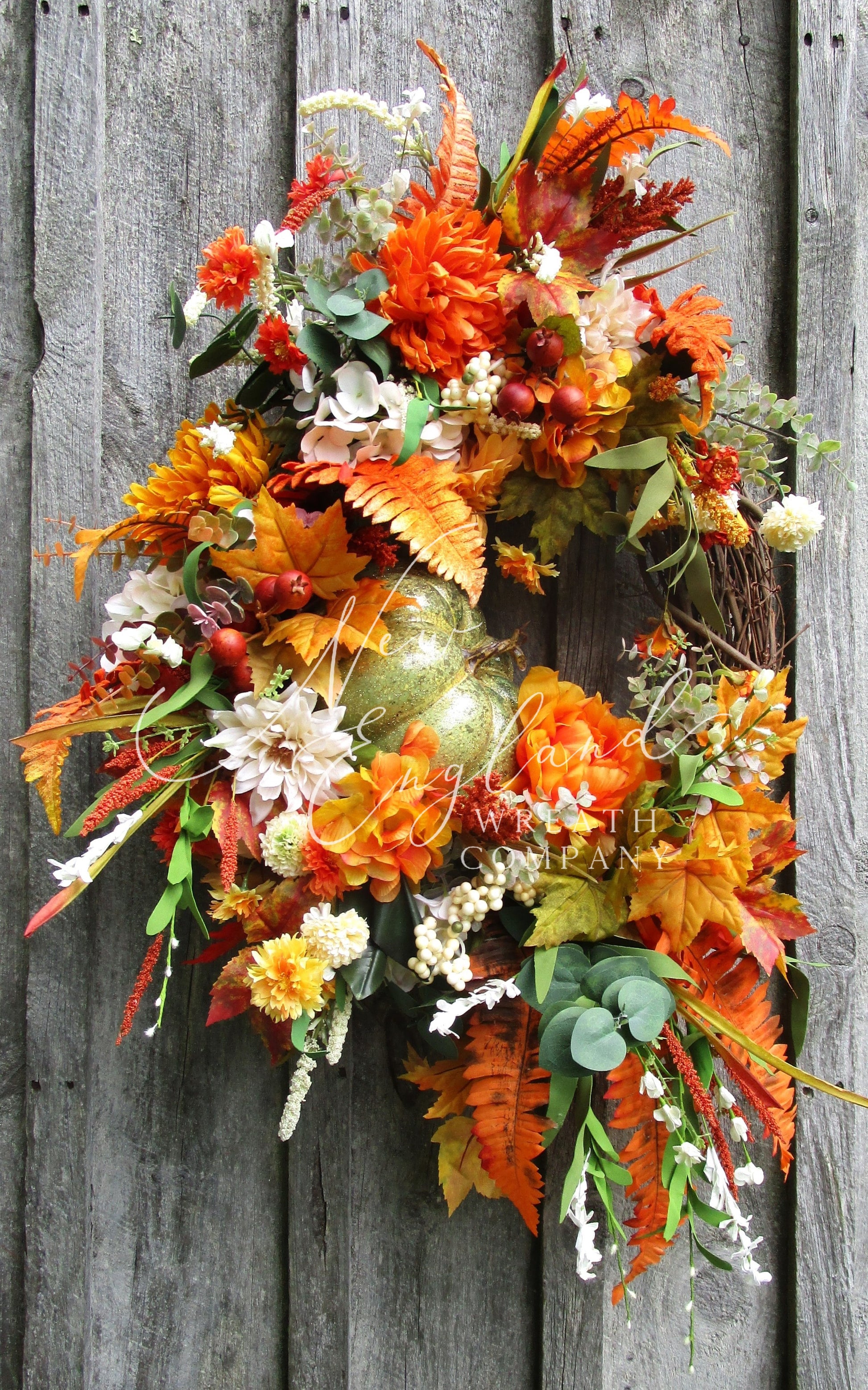 Perfect for front doors, mantels, or fall weddings, this wreath brings warmth and charm to any space.