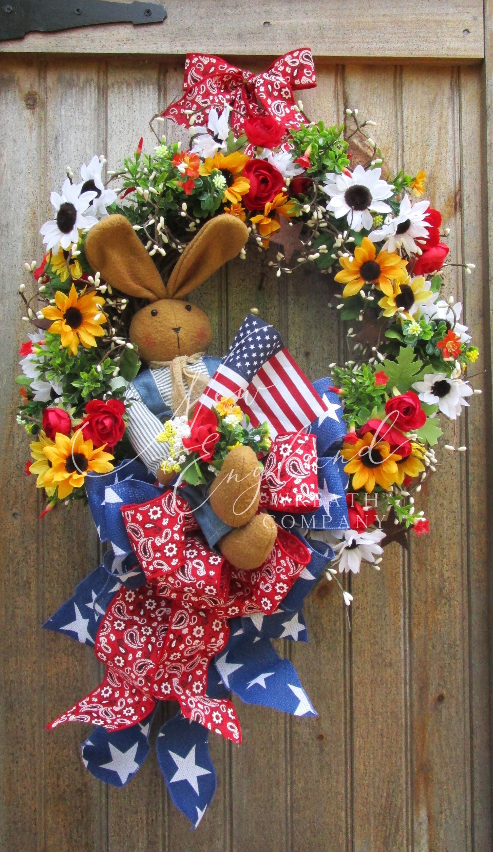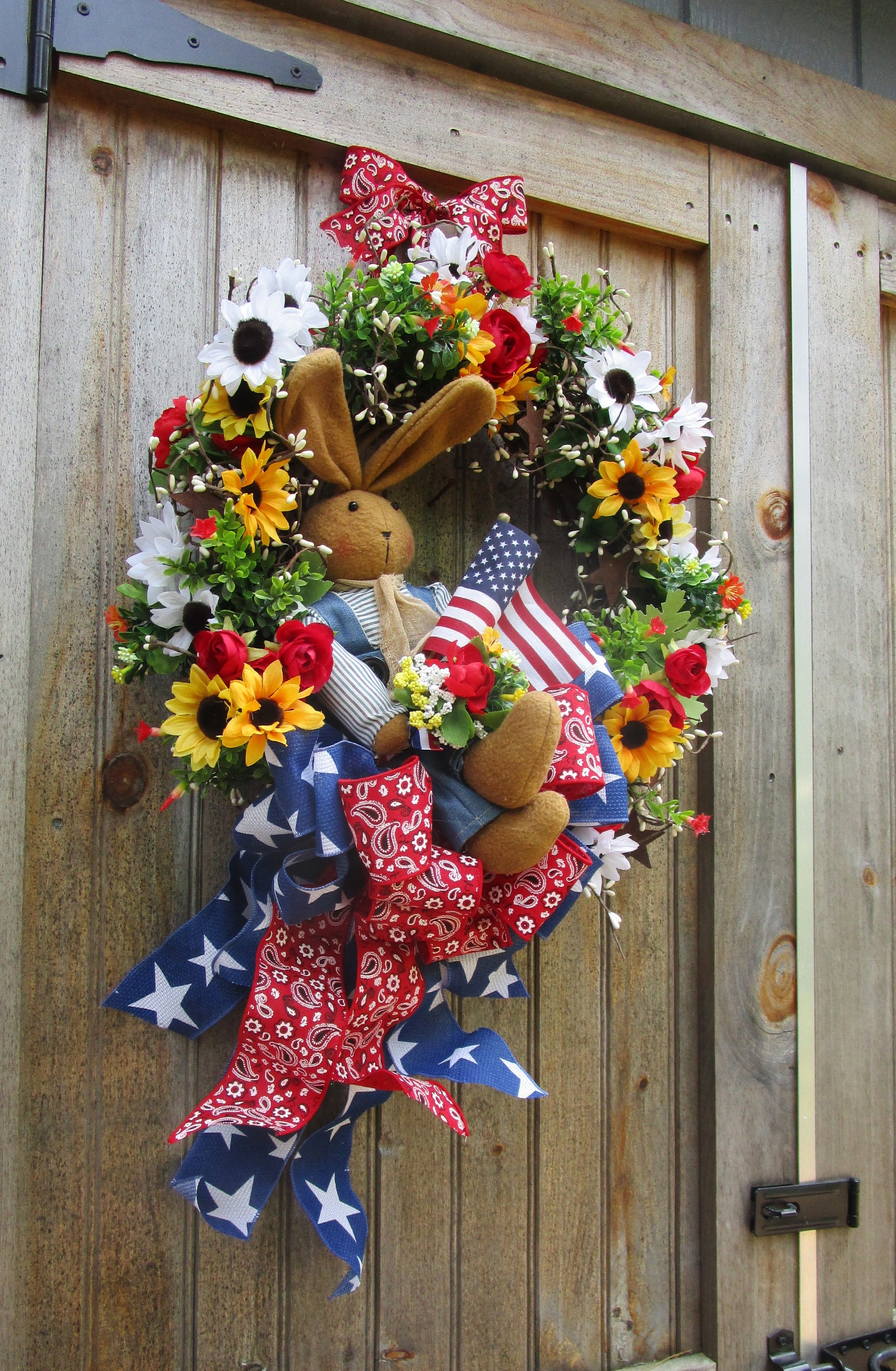 Country Bunny Patriotic Porch Wreath