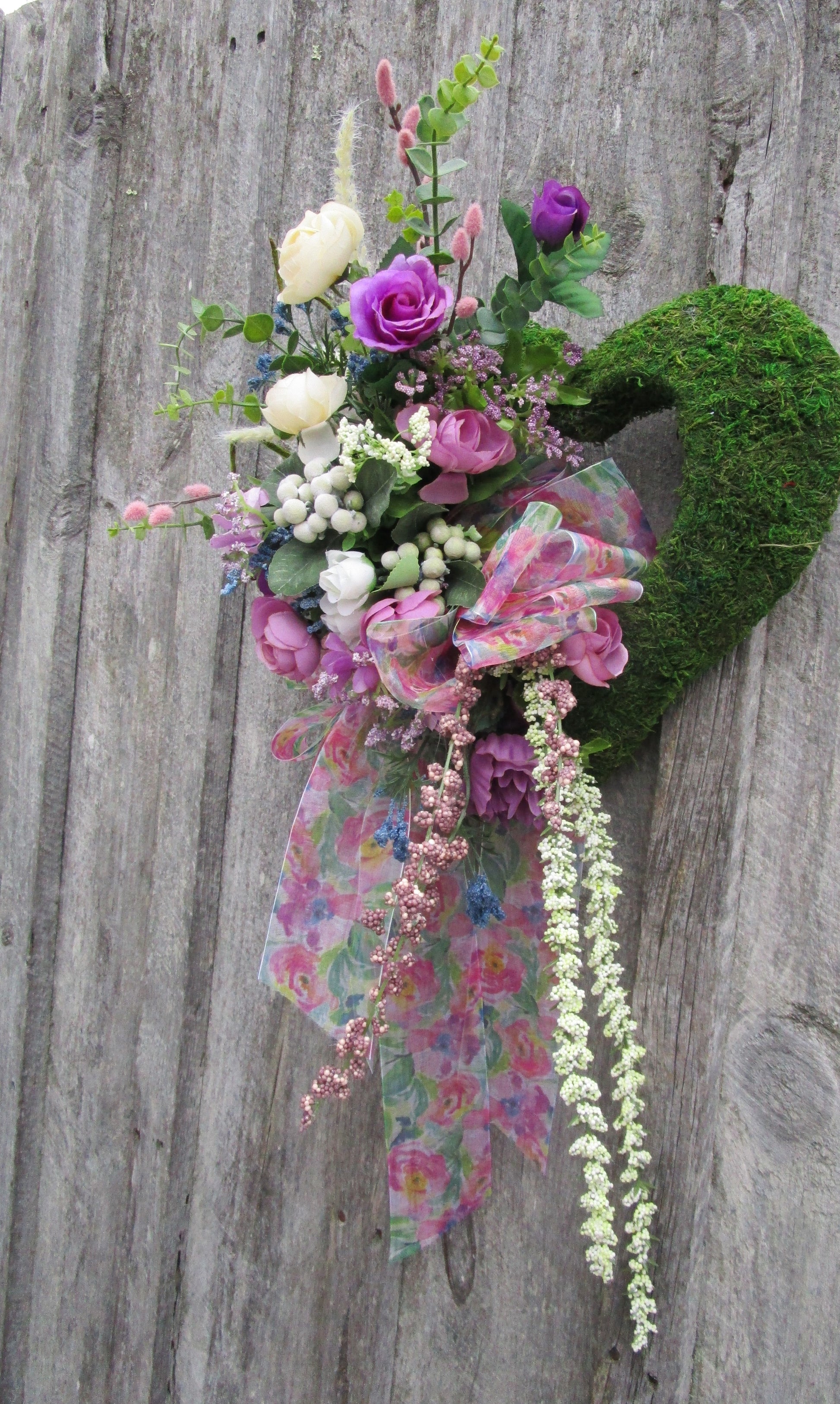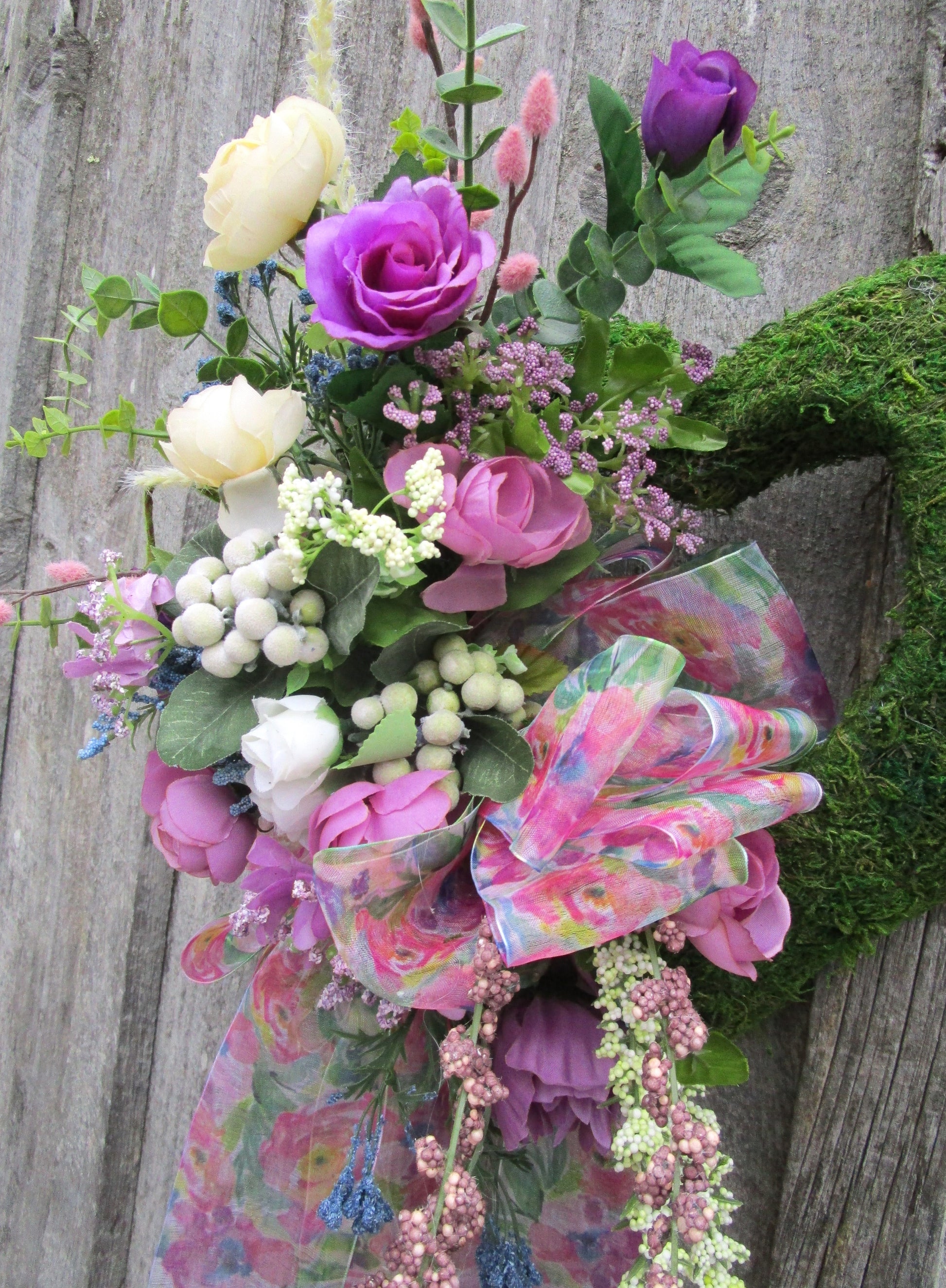 Celebrate the sweet romance of the countryside with our Essex Country Garden Wreath — a heart-shaped design overflowing with roses, ranunculus, wildflowers, berries, and greenery. Built on a faux moss frame and finished with a romantic sheer watercolor bow, this wreath is perfect for adding a touch of garden poetry to your spring and summer décor.
